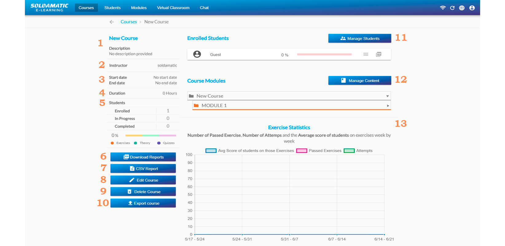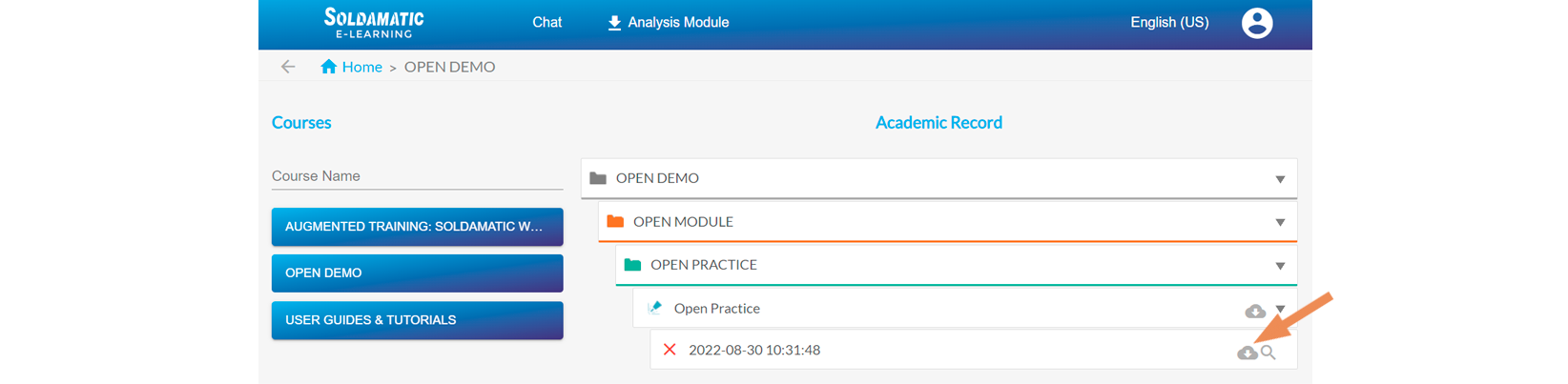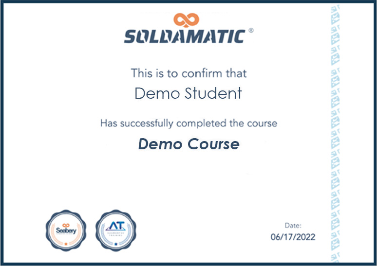 Soldamatic Diploma is available for students who complete a course. The diploma icon will be disabled in case the student has not completed the course.