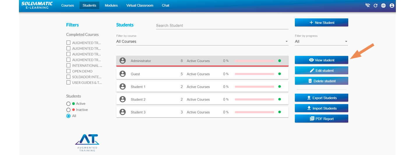 In the students section, go to «View student».