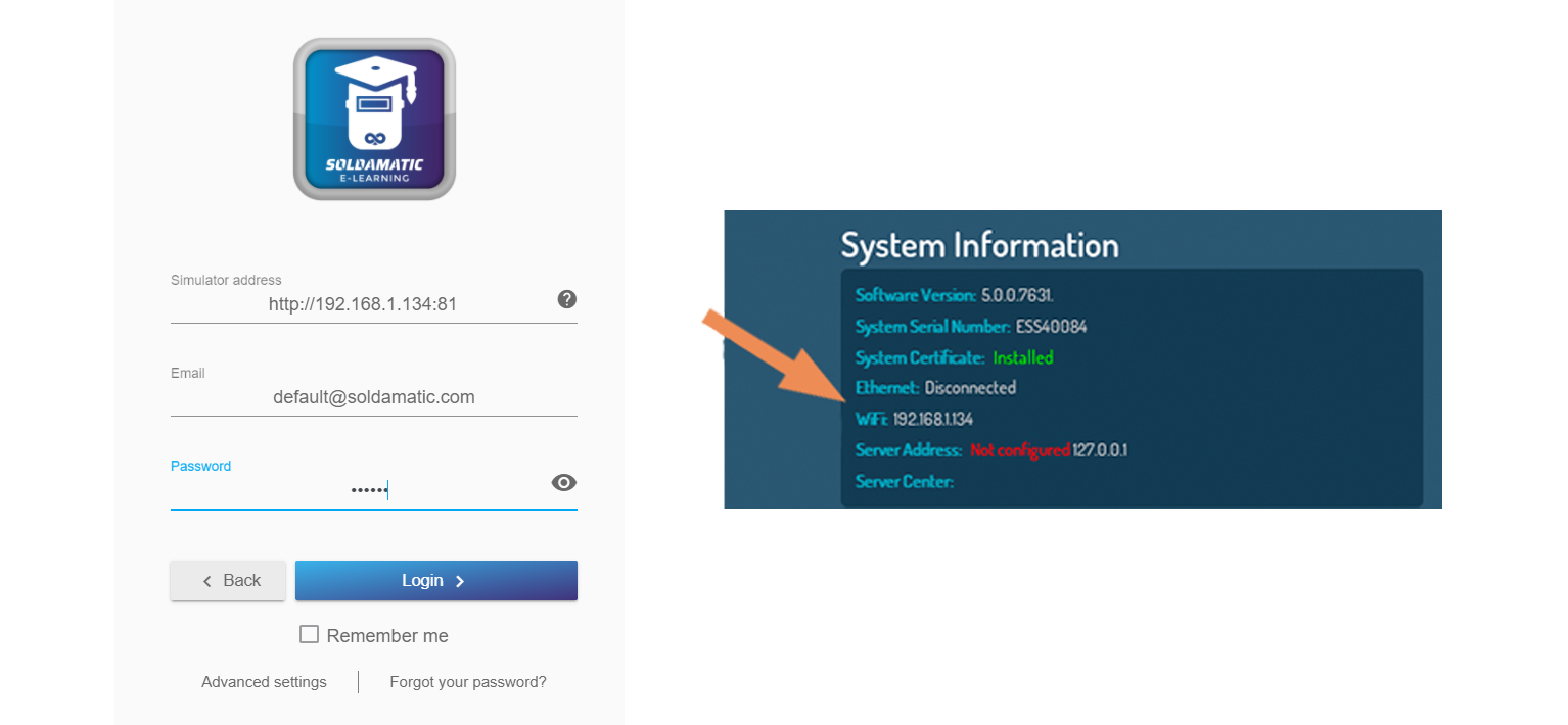 NOTE: To start using your Soldamatic e-Learning Student’s Access, your laptop/PC must be connected to the same network as your simulator or controller.